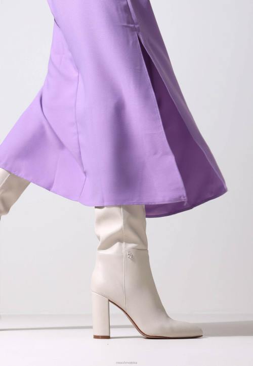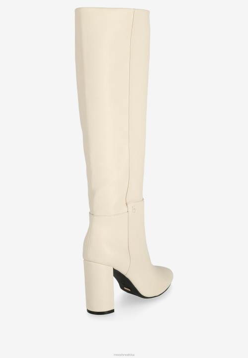 prljavo bijele visoke ženske čizme iz mexxa. šiljati vrh i poluzatvarač. visoka blok peta. crveni x na potplatu kao potpis na ljubavnu priču kako je mexx rođen. počelo je poljupcem. savjetujemo vam da redovito prskate čizme protiv vode i prljavštine.