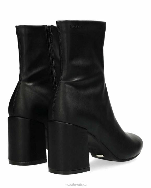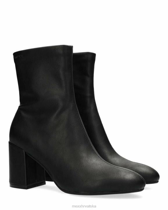 crne kratke ženske čizme iz mexxa. šiljati vrh i patentni zatvarač. visoka blok peta. crveni x na potplatu kao potpis na ljubavnu priču kako je mexx rođen. počelo je poljupcem. savjetujemo vam da redovito prskate čizme protiv vode i prljavštine.