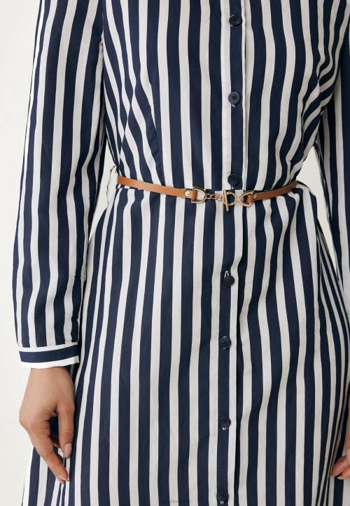 kupite ovu tamnoplavu maksi haljinu online na službenom mexx webshopu. ova maksi haljina izrađena je od 85% viskoze, 15% poliestera i ima pravilan kroj i ovratnik košulje. dolazi sa smeđim remenom za naglašavanje vašeg struka! kombinirajte ovaj artikl s parom lijepih cipela iz naše kolekcije.