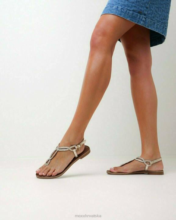 jolene sandala iz mexx ženske kolekcije je klasičan japanka model u obliku sandale. ova zlatna sandala ima pleteni kožni remen oko gležnja koji ide preko stopala do između prstiju. remen oko gležnja ima zlatnu kopču i podesiv je za zatvaranje na gležnju. na njemu je mali zlatni mexx privezak. potplat je izrađen od antilopa i stoga je vrlo udoban. jolene sandale također su dostupne u crnoj i boji konjaka. sandale su kožne i zato vam savjetujemo da ih redovito prskate protiv vode i prljavštine.