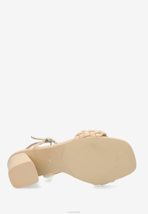 ženstvena gola sandala s blok petom. od imitacije kože. remen preko prstiju je pleten. metalni logo marke na kopči. lako se kombinira. udobna peta. sandale redovito prskajte protiv vode i prljavštine.